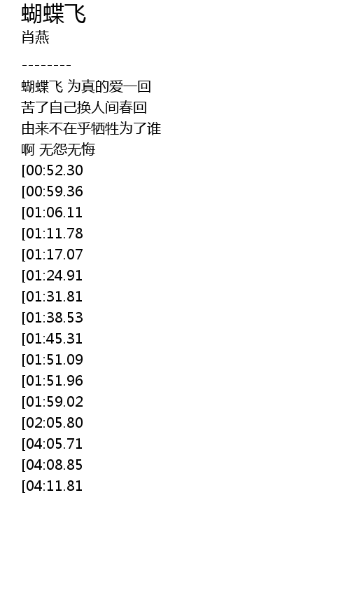 | [03:44.88][01:51.96] | 啊蝴蝶飞 啊 蝴蝶飞 |