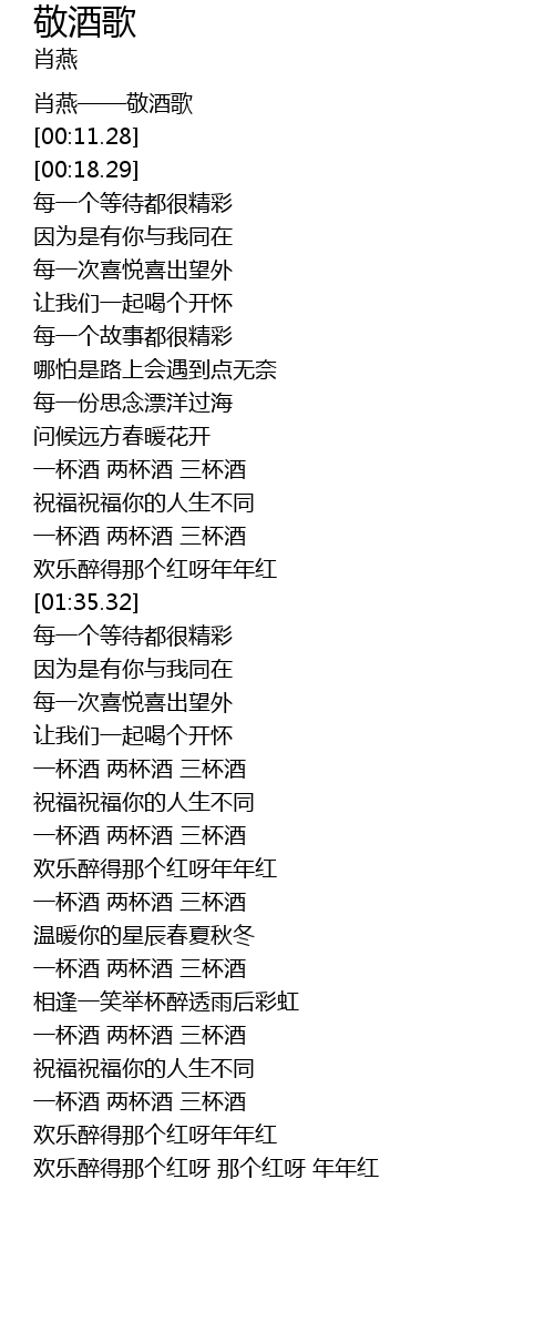 | [02:34.19] | 一杯酒 两杯酒 三杯酒 |