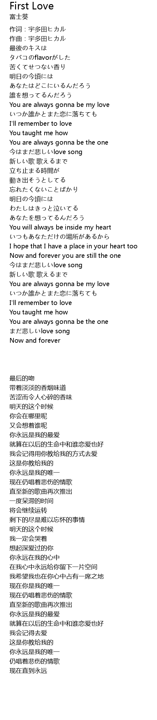 | [00:02.82] | 作词:宇多田ヒカル |