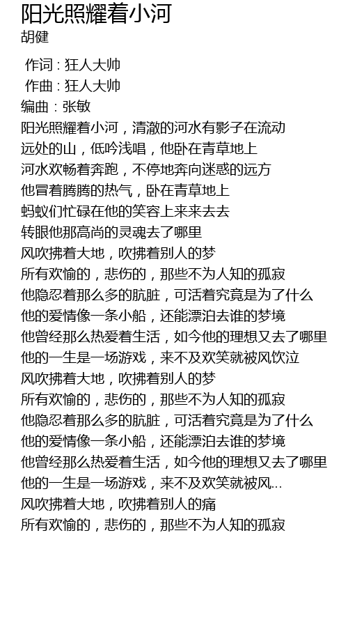 | [00:18.462] | yáng guāng zhào yào zhe xiǎo hé, qīng chè de hé shuǐ yǒu yǐng zi zài liú dòng |