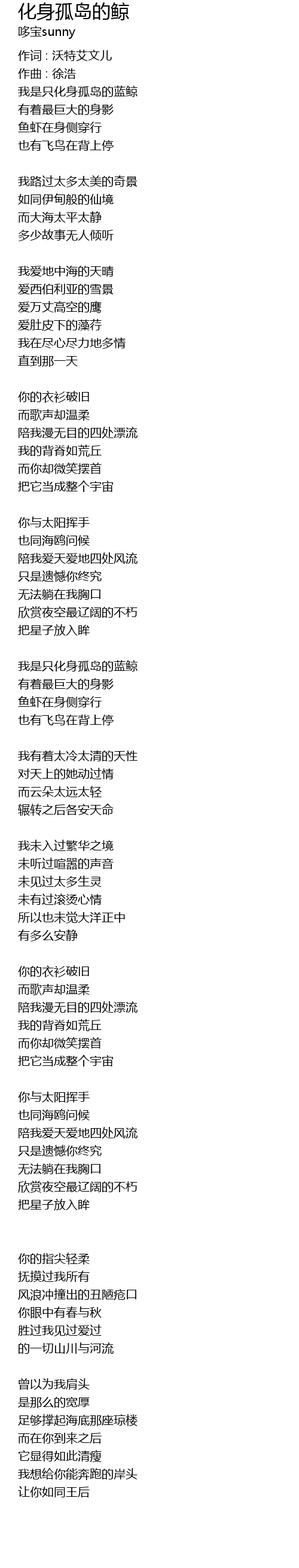 | 作词 : 沃特艾文儿 | |