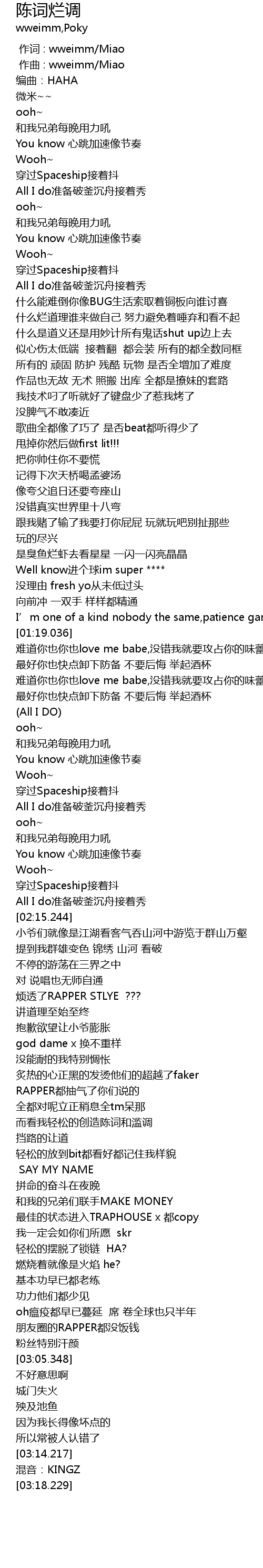 | [02:37.829] | ér kàn wǒ qīng sōng de chuàng zào chén cí hé làn diào |