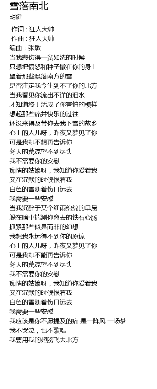 | [00:38.261] | 是否注定我今生到不了你的北方 |