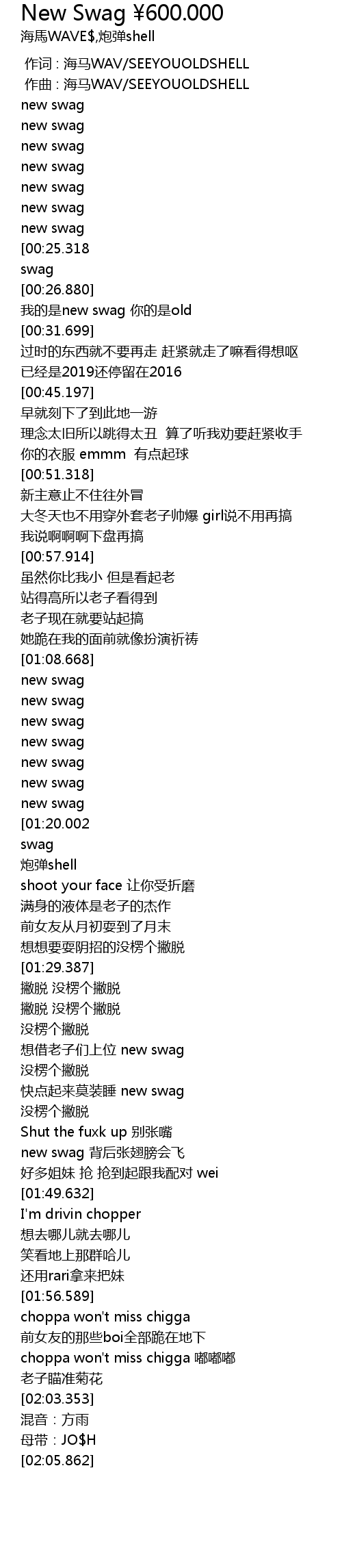 | [00:29.798] | wo de shi new swag ni de shi old |