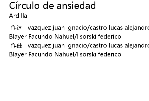 | [00:00.000] | 作词 : vazquez juan ignacio/castro lucas alejandro/Carschenboim Blayer Facundo Nahuel/lisorski federico |