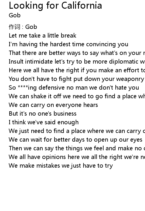 | Song | Looking for California |