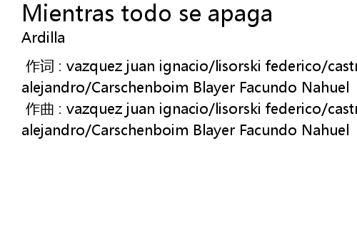 | [00:00.000] | 作词 : vazquez juan ignacio/lisorski federico/castro lucas alejandro/Carschenboim Blayer Facundo Nahuel |