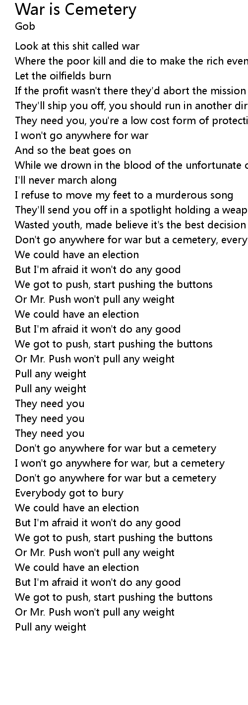 Don't go anywhere for war but a cemetery, everybody gets buried |