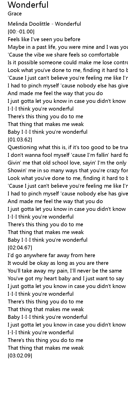 | [00:59.08] | Baby I-I-I think you're wonderful |