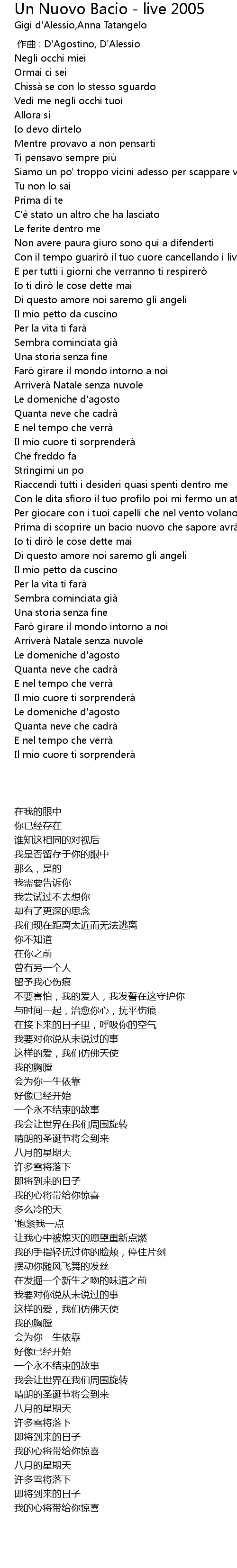 | [02:24.550] | Prima di scoprire un bacio nuovo che sapore avra |