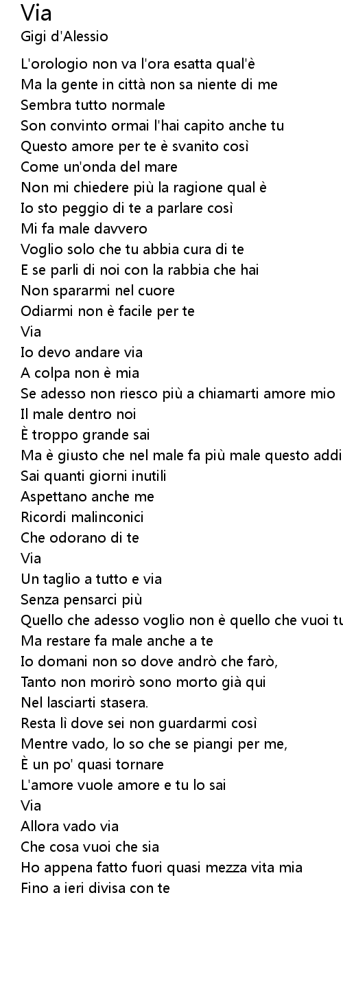 | Se adesso non riesco piu a chiamarti amore mio | |