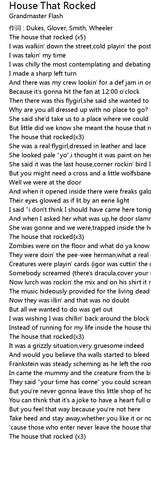 | Now lurch was rockin' the mix and on his shirt it read | |