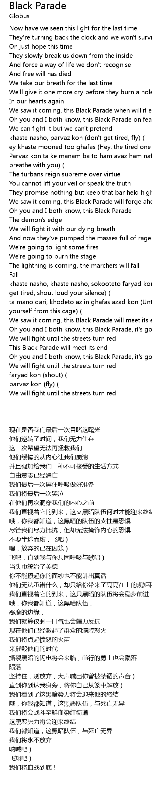 | [03:41] | We saw it coming, this Black Parade will meet its end |