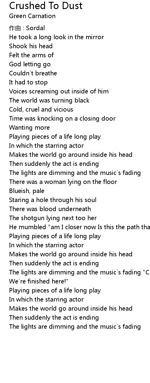 | Song | Crushed To Dust |