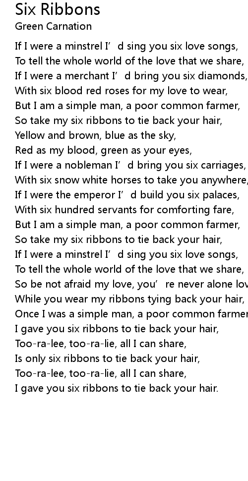 | So take my six ribbons to tie back your hair, | |