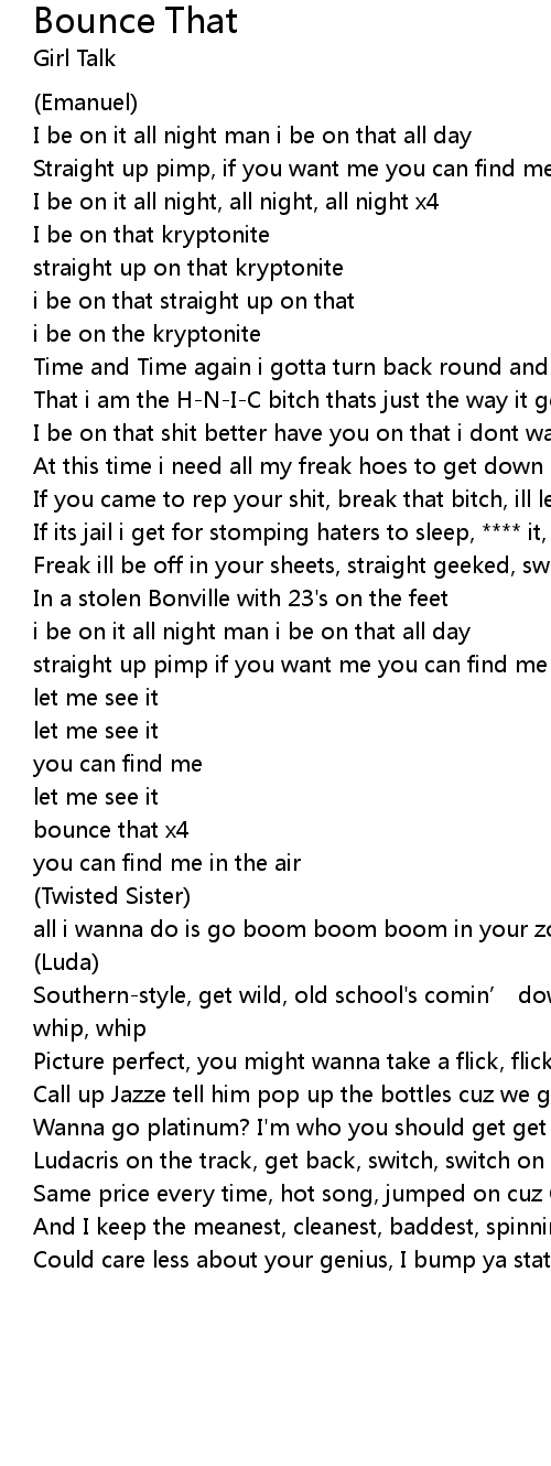 | all i wanna do is go boom boom boom in your zoom zoom zoom | |