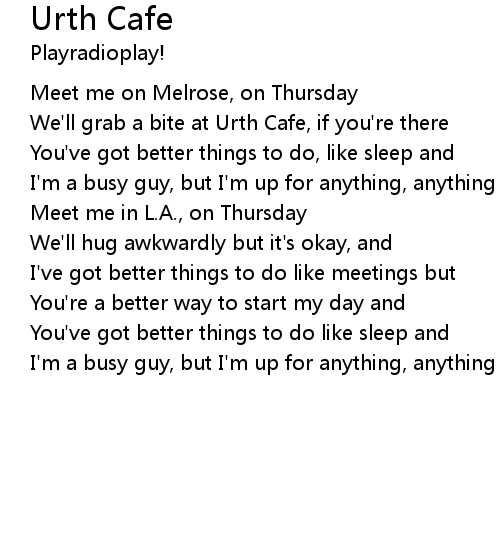| We'll grab a bite at Urth Cafe, if you're there | |