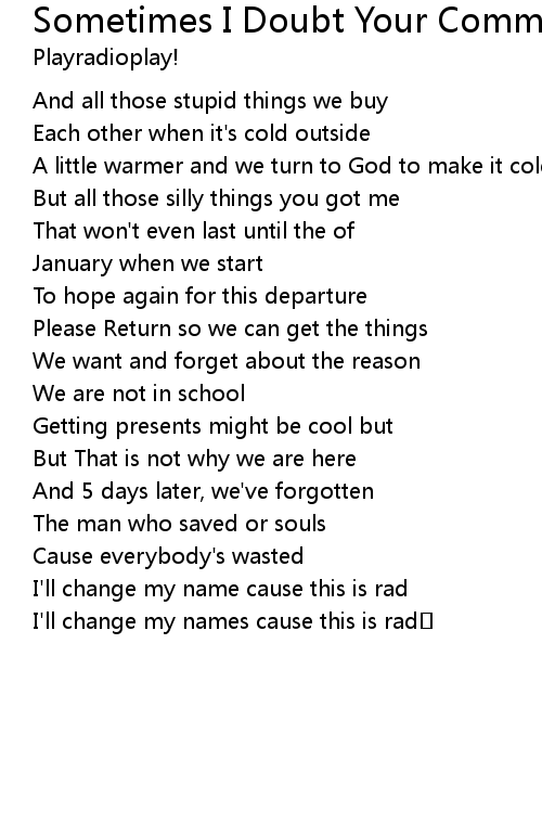 | Song | Sometimes I Doubt Your Commitment to Sparkle Motion |