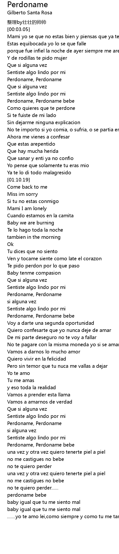 | [00:45.24] | Perdoname, Perdoname bebe |