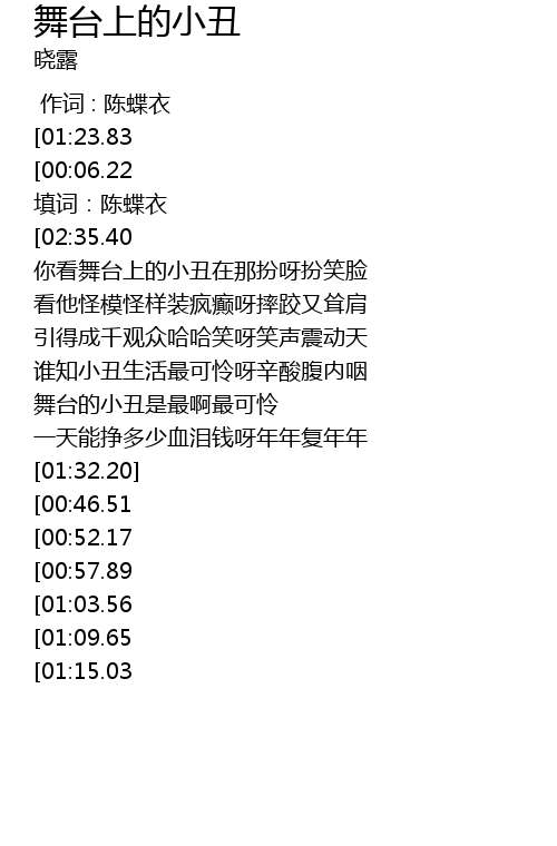 | [02:33.16][01:23.83][00:00.00] | -= 晓露《 舞台上的小丑 》=- |