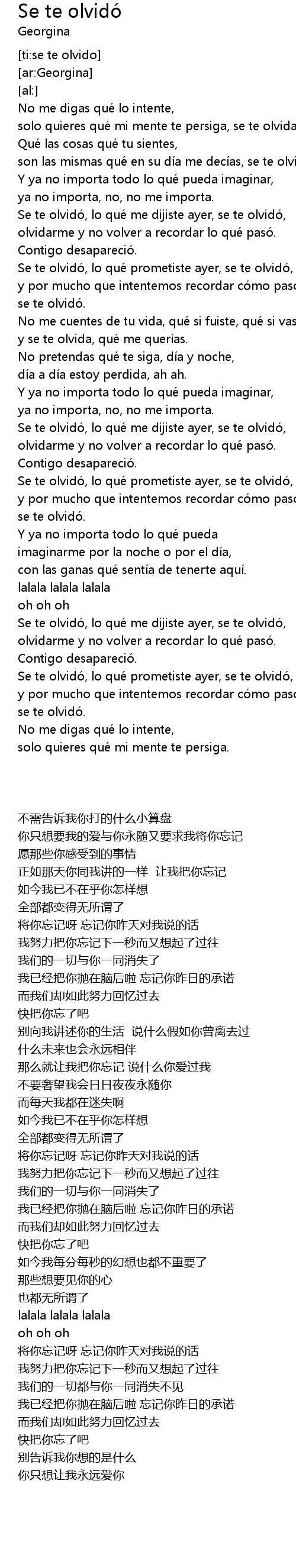 | [00:34.95] | Se te olvidó, lo qué me dijiste ayer, se te olvidó, |