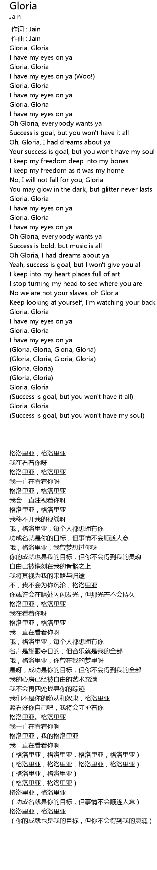 | [02:21.89] | (Gloria, Gloria) |