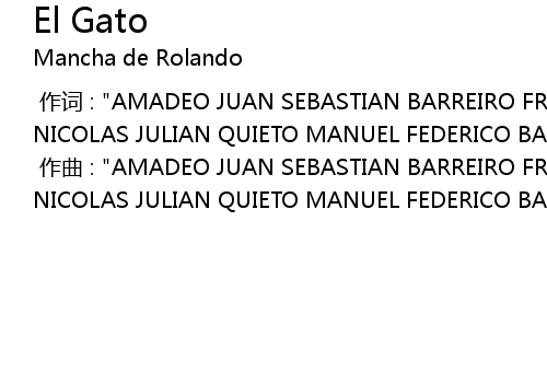 | [00:00.000] | 作词 : "AMADEO JUAN SEBASTIAN BARREIRO FRANCISCO JOSE FONTANA NICOLAS JULIAN QUIETO MANUEL FEDERICO BASUALDO GONZALO" |