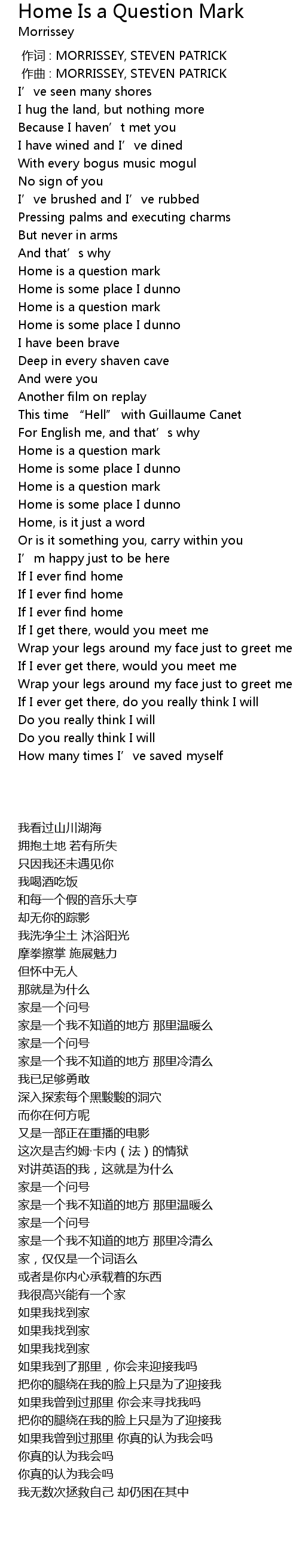 | [02:01.63] | Home is a question mark |