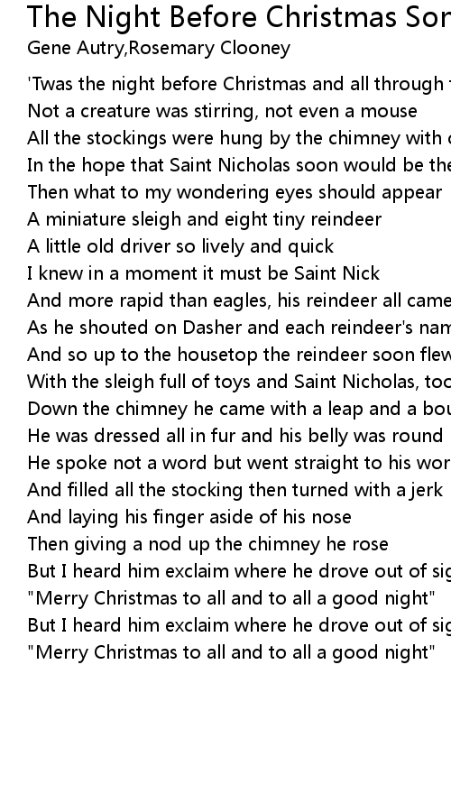 'Twas the night before Christmas and all through the house |
