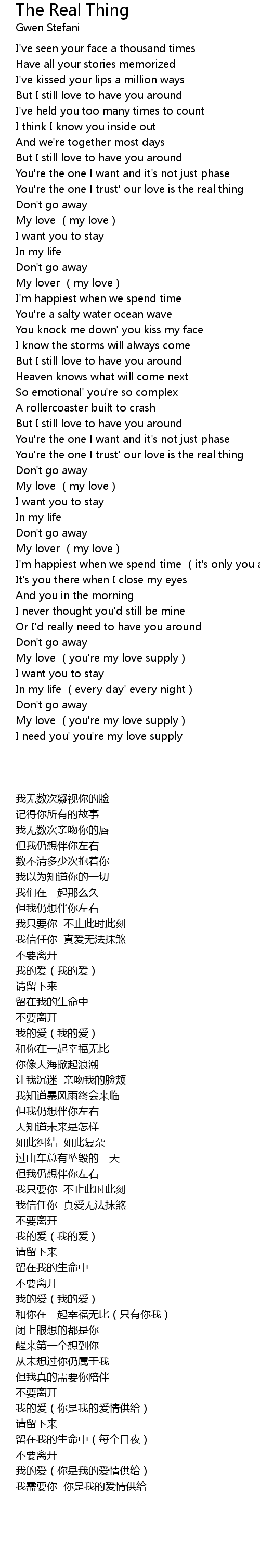 | [02:17.440] | You' re the one I trust' our love is the real thing |