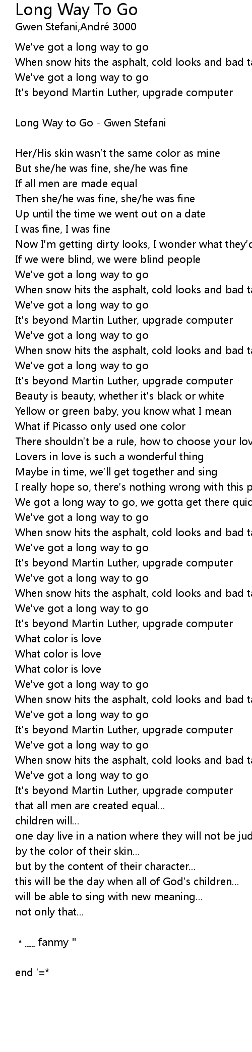 | Long Way to Go Gwen Stefani | |