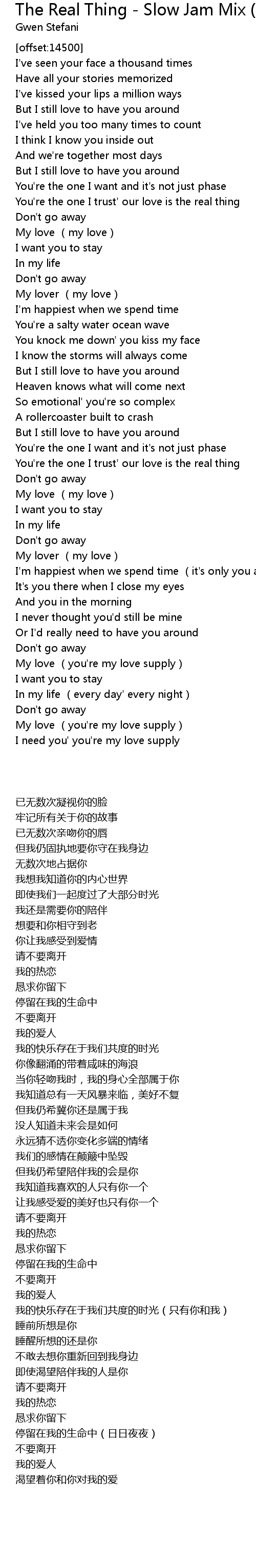 | [00:56.67] | You' re the one I trust' our love is the real thing |