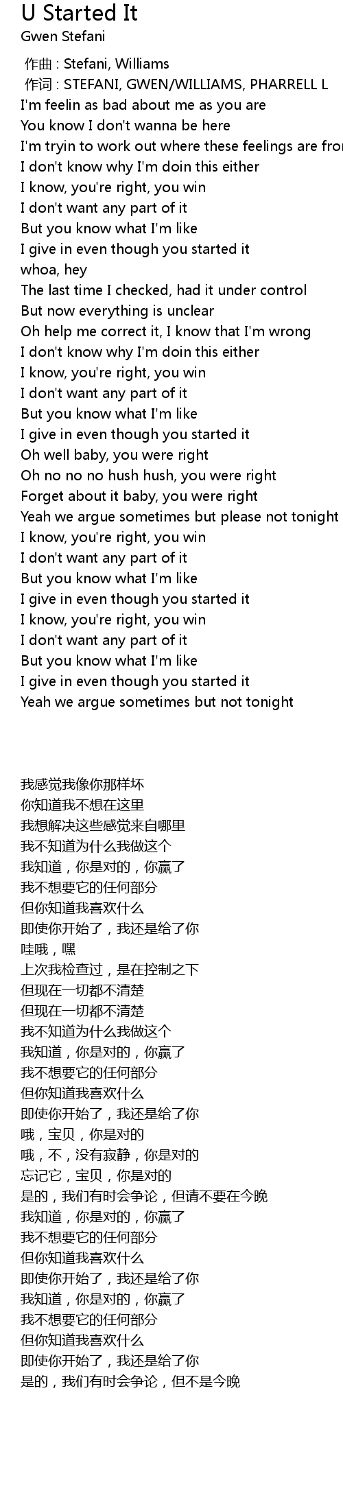 | [00:01.00] | 作词 : STEFANI, GWEN/WILLIAMS, PHARRELL L |