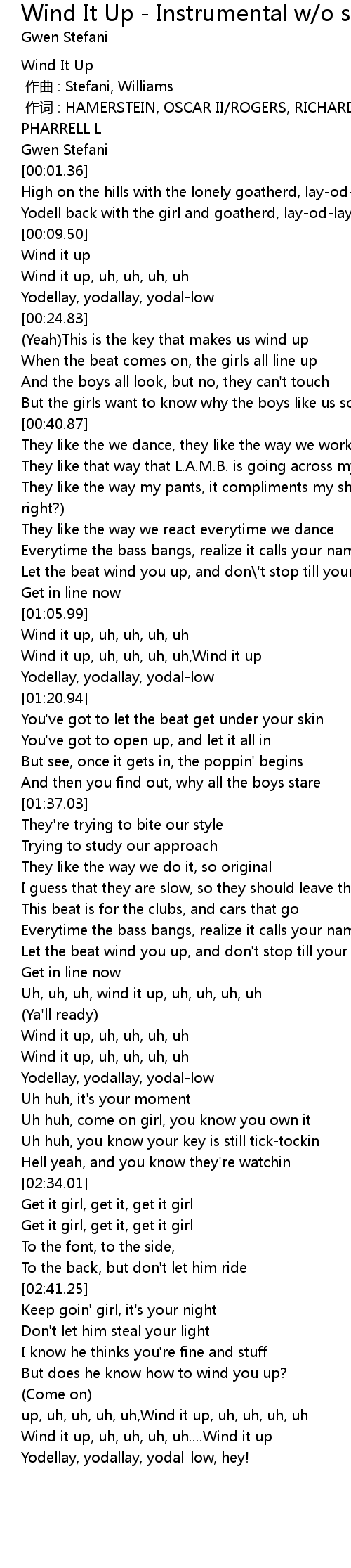 | [02:57.74] | Wind it up, uh, uh, uh, uh.... Wind it up |