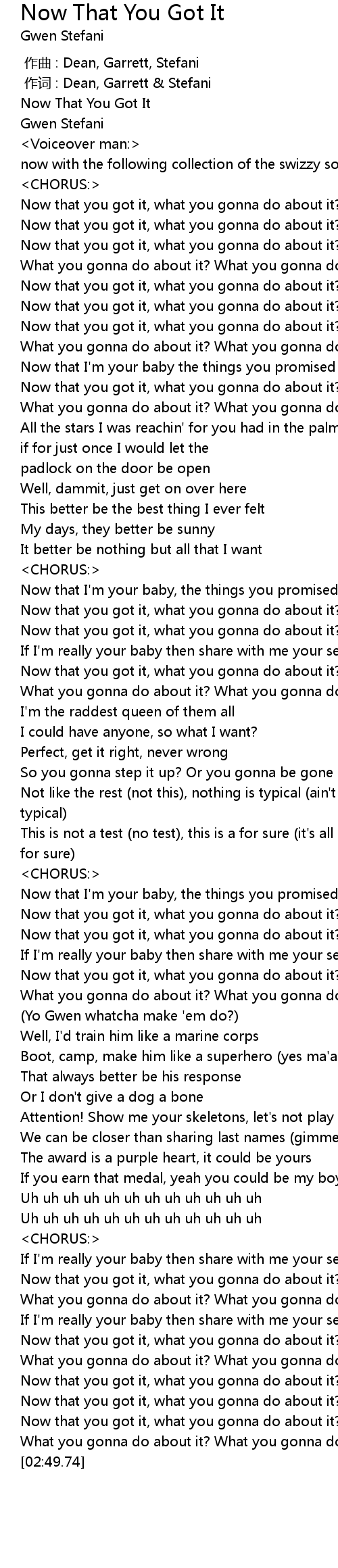 | [02:44.82] | Now that you got it, what you gonna do about it? |