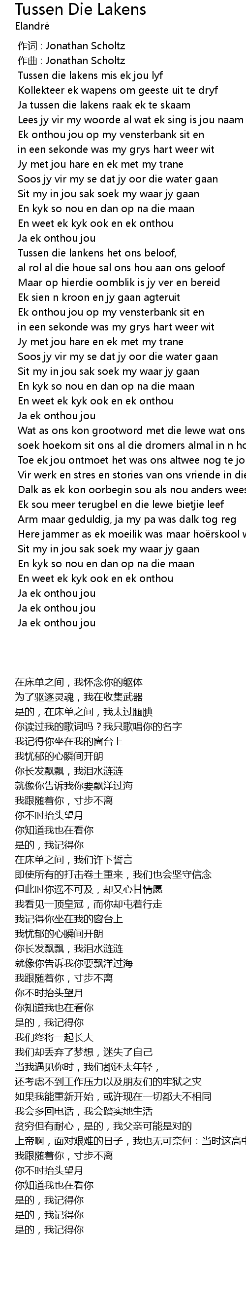 | [00:40.302] | Lees jy vir my woorde al wat ek sing is jou naam |