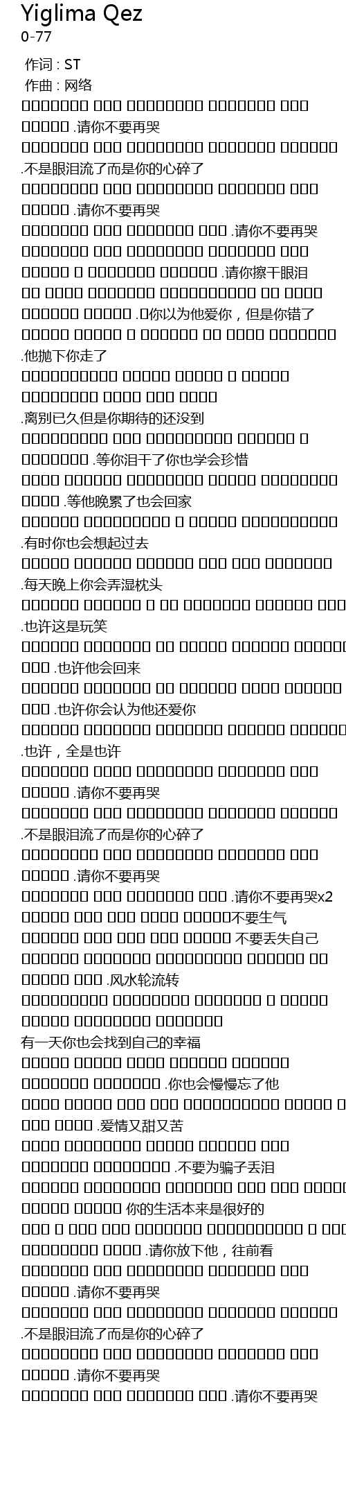 | [01:41.193] | يىغلىما قىس يىغلىما قىز .请你不要再哭x2 |