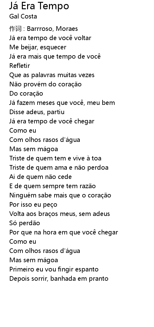 | Song | Já Era Tempo |