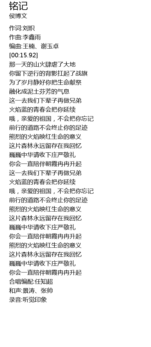 | [02:17.19] | 哦,亲爱的祖国,不会把你忘记 |