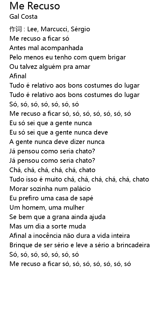 | Me recuso a ficar só, só, só, só, só, só, só | |