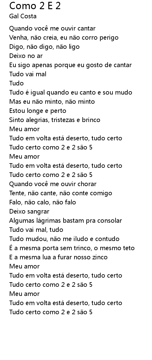 | Song | Como 2 E 2 |