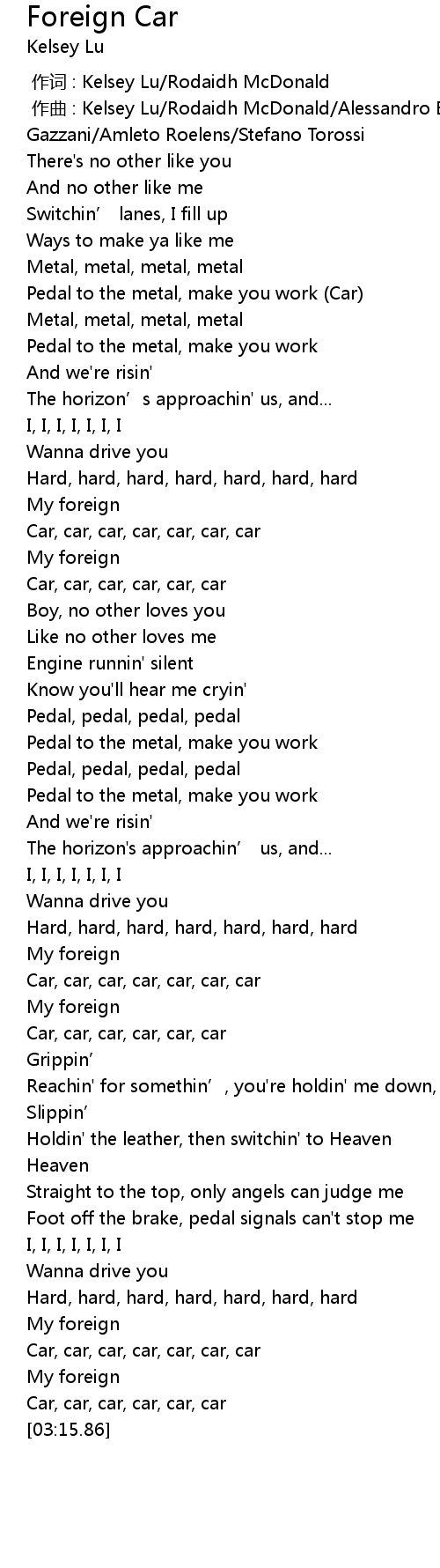 | [00:46.05] | Pedal to the metal, make you work Car |