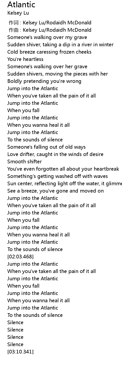 | [00:01.000] | zuò qǔ : Kelsey Lu Rodaidh McDonald |