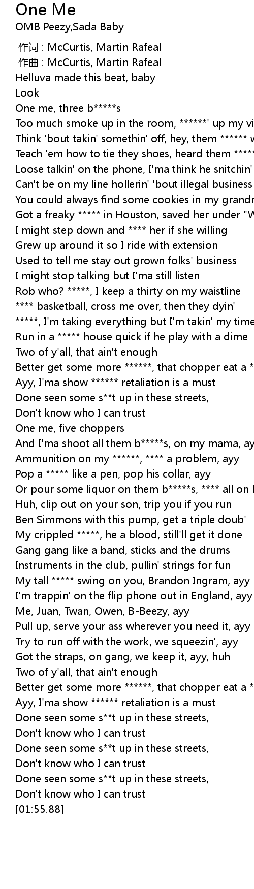 | [01:00.11] | And I'ma shoot all them b*****s, on my mama, ayy |