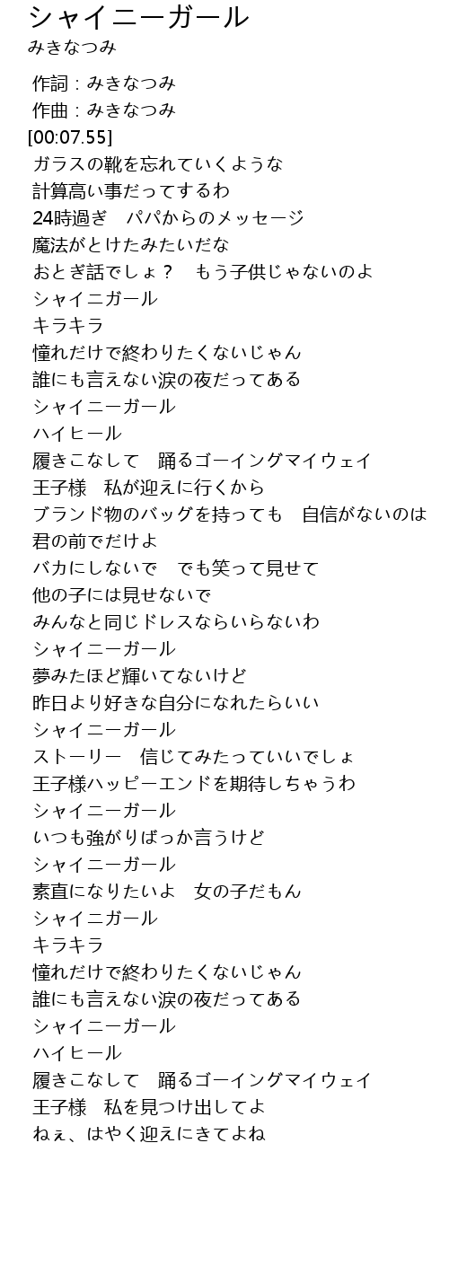 | [02:37.10] | 素直になりたいよ 女の子だもん |