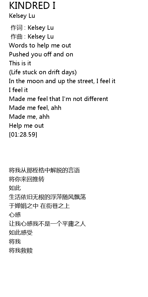 | [00:00.000] | zuò cí : Kelsey Lu |