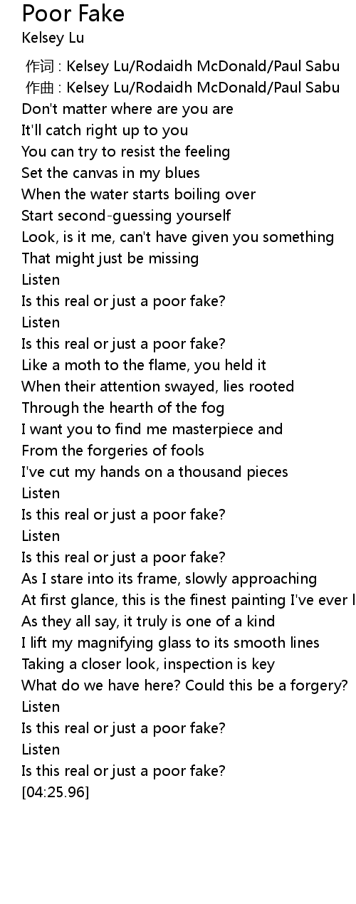 | [03:49.84] | Is this real or just a poor fake? |