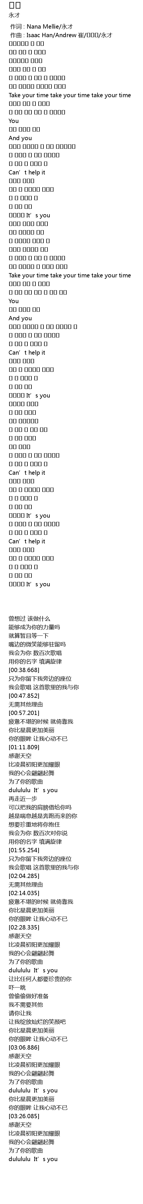 | [00:00.000] | 作词 : Nana Mellie/永才 |