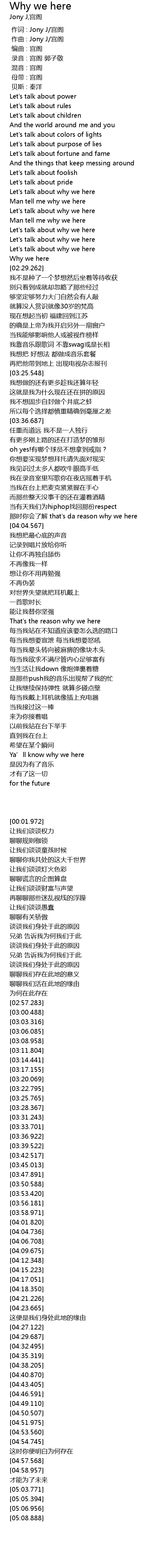 | [00:01.000] | zuò qǔ : Jony J gōng gé |