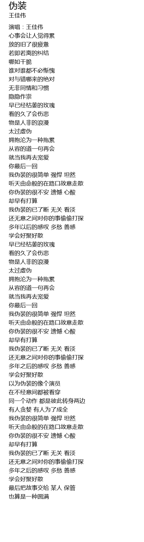 | [04:02.71] | 你伪装的很不安 遗憾 心酸 |